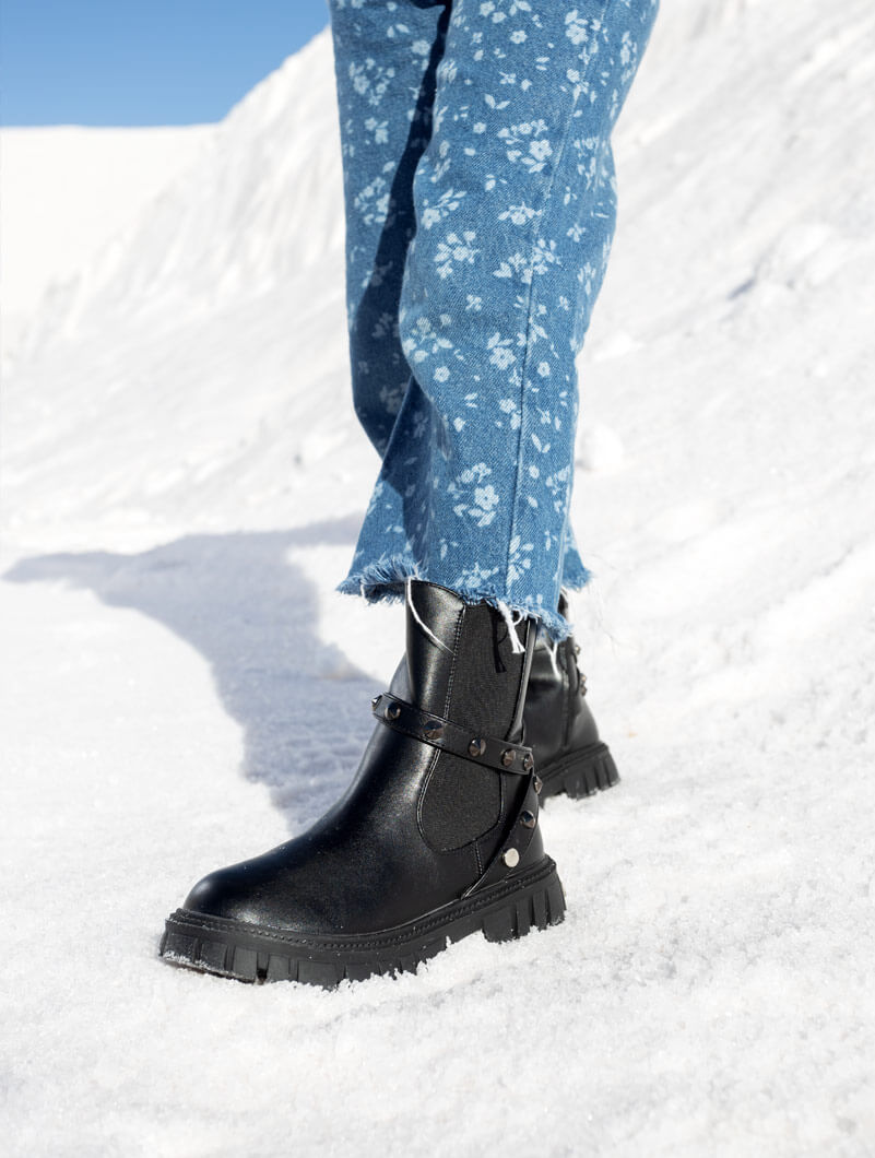 Optez pour ces bottines tendances pour vos petites filles ! Confortables pour leur semelle crantée, un élastique sur le côté externe du pied et une fermeture éclair sur le côté interne du pied viennent faciliter l’enfilage de la paire. Une bande ornée de strass autour de l'élastique.