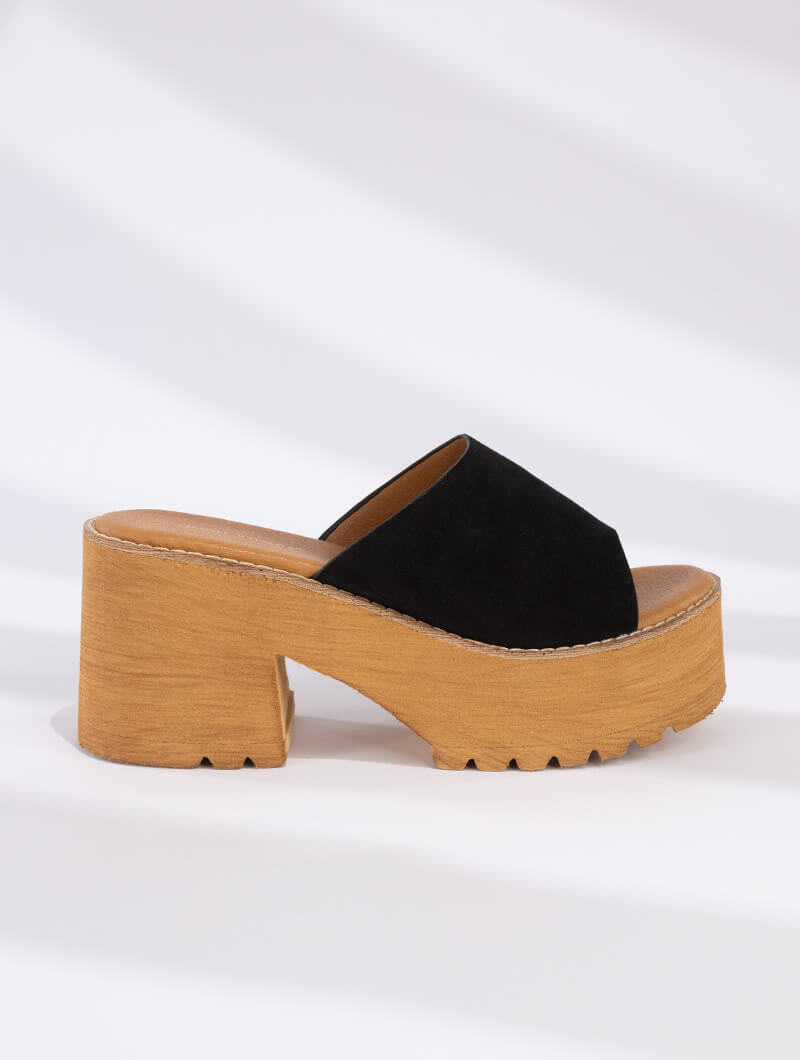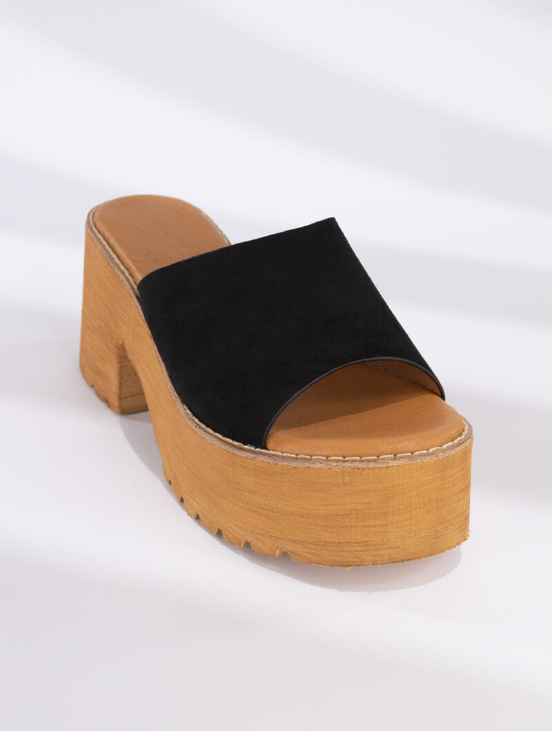 Sabots en daim avec un talon pour un look chic et décontracté. La bride assure un confort optimal, tandis que le talon ajoute une touche de charme à votre tenue. Parfait pour toutes les saisons.