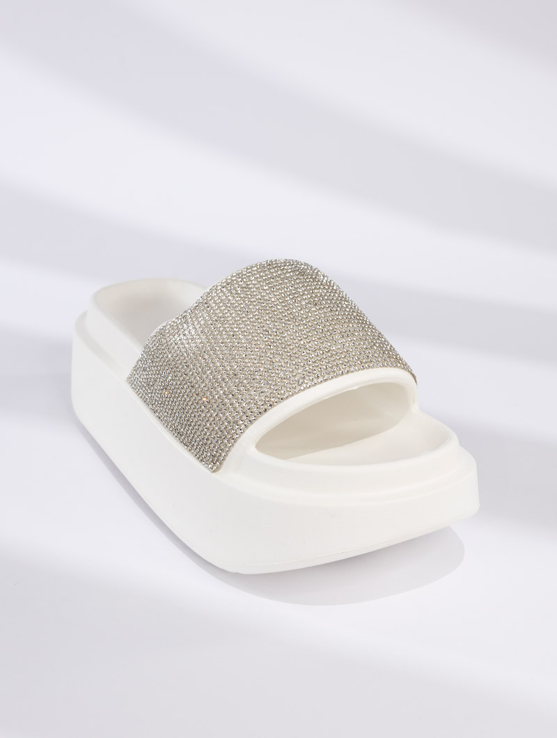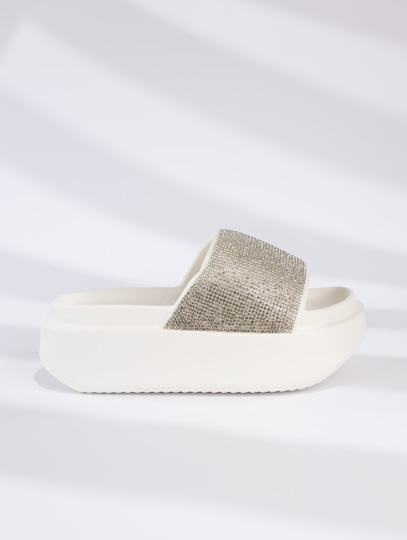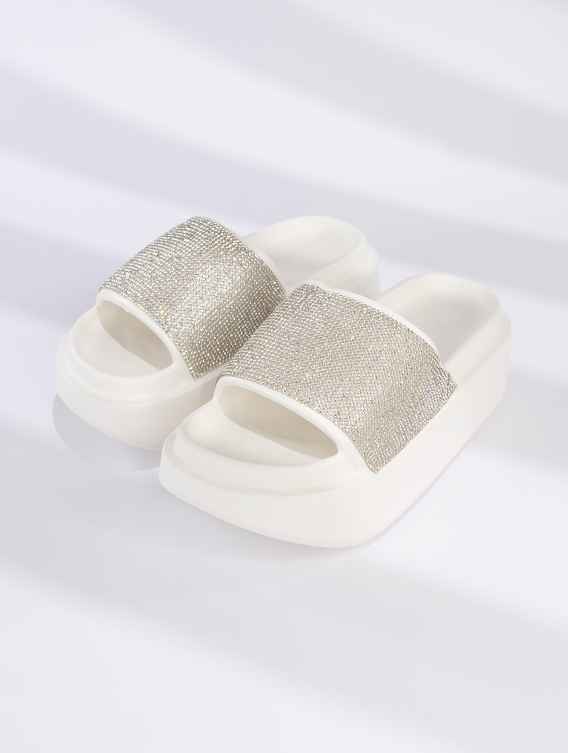 Ces mules ajoutent une touche de sophistication à toute tenue. Les strass scintillants ajoutent une touche de luxe à votre tenue, tandis que la semelle épaisse offre un soutien optimal. Légères et confortables, ces mules sont un choix idéal pour compléter votre look avec éclat.