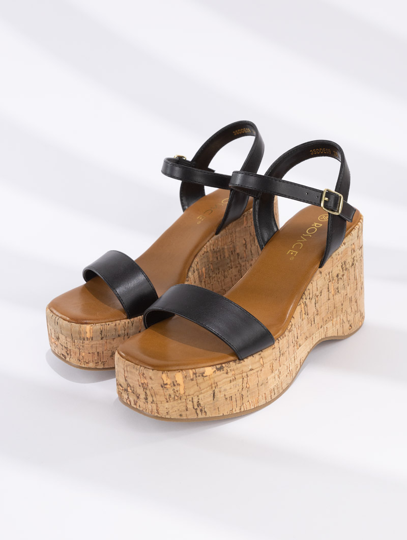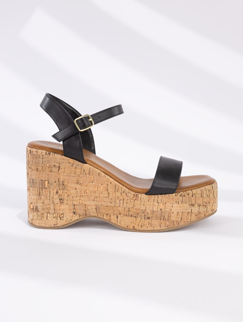 Apportez une touche naturelle à votre look avec ces sandales compensées en liège. Leur talon compensé offre un confort exceptionnel tout en allongeant élégamment votre silhouette.