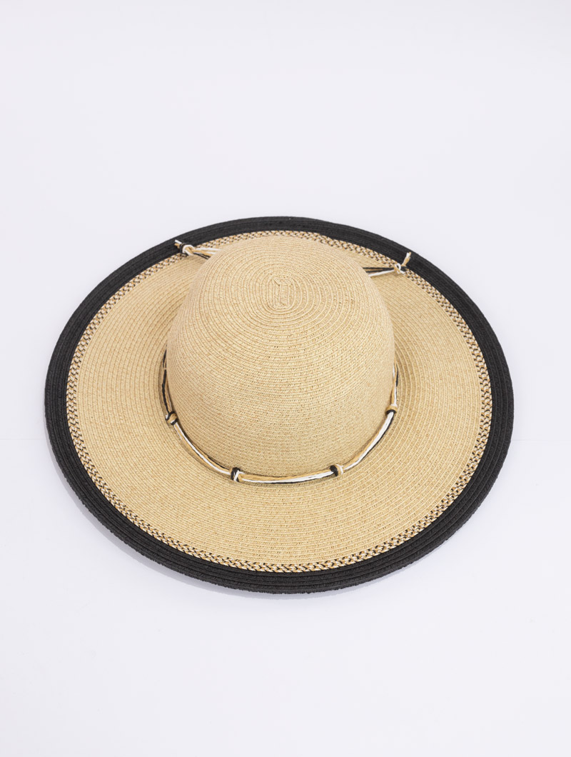 Un chapeau de paille classique rehaussé par un élégant. Idéal pour les journées ensoleillées, ce chapeau offre une protection contre le soleil tout en ajoutant une touche de glamour à votre style